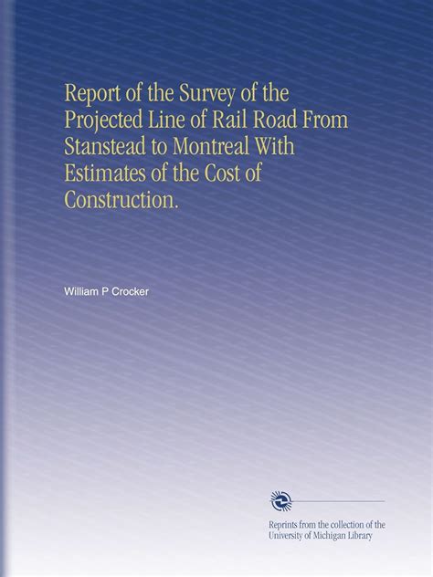 Read Online Report of the Survey of the Projected Line of Rail Road from Stanstead to Montreal; with Estimates o by Lovell & Gibson William P. Crocker (2009-07-17) Hardcover